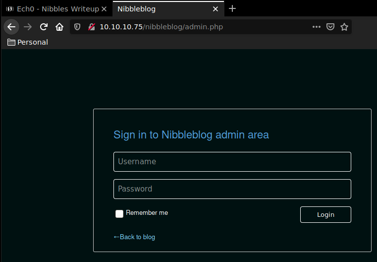 + http://10.10.10.75/nibbleblog/admin.php (CODE:200|SIZE:1401)