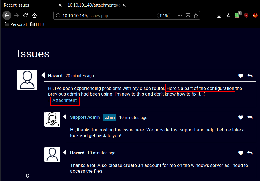 Our nmap scan picked up the http service on port 80 so let's see what we are dealing with. http://10.10.10.149/login.php and we navigate over to issues.php