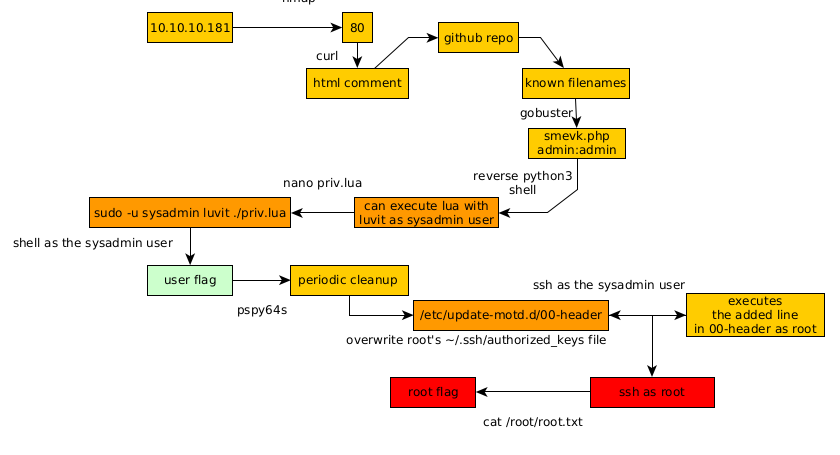 connect to [10.10.14.13] from (UNKNOWN) [10.10.10.181] 54782