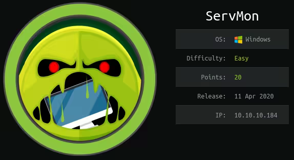 [ 10.10.14.13/23 ] [ /dev/pts/5 ] [~/HTB/Servmon]