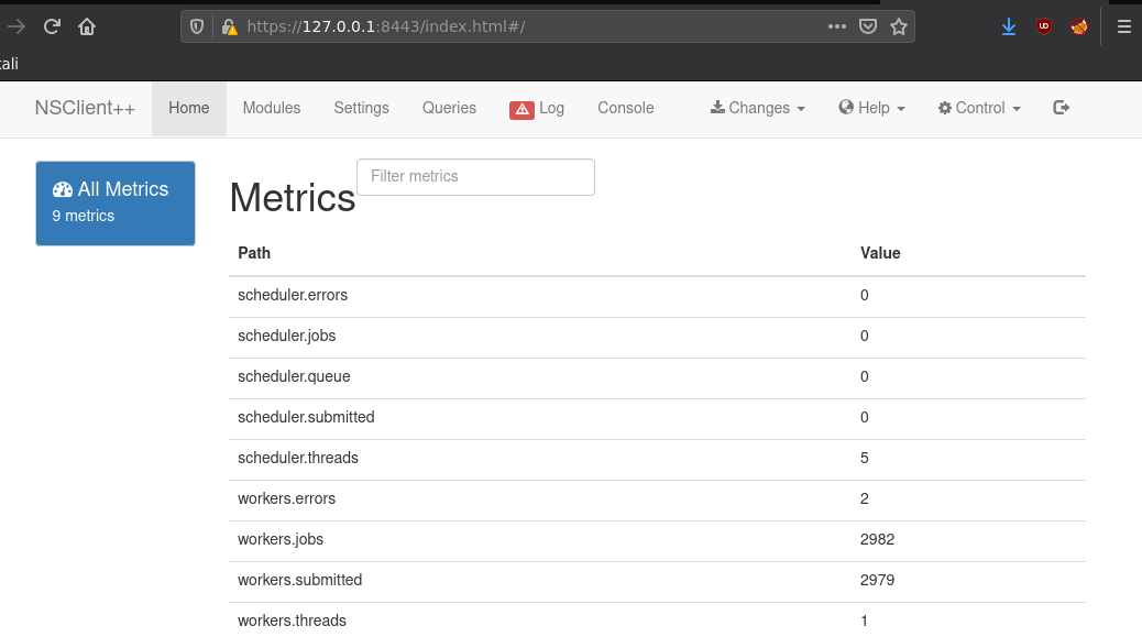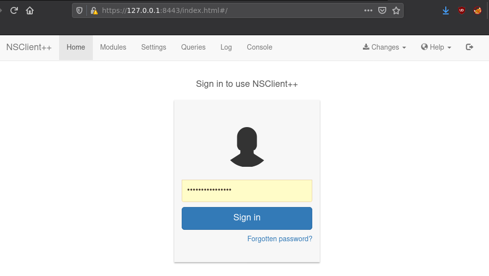 And then, we're going to visit port 8443, that our nmap scan picked up as being NSClient++, however viewing the page from https://10.10.10.184:8443 will not allow us to login because only localhost is allowed as we can see from the config file:
