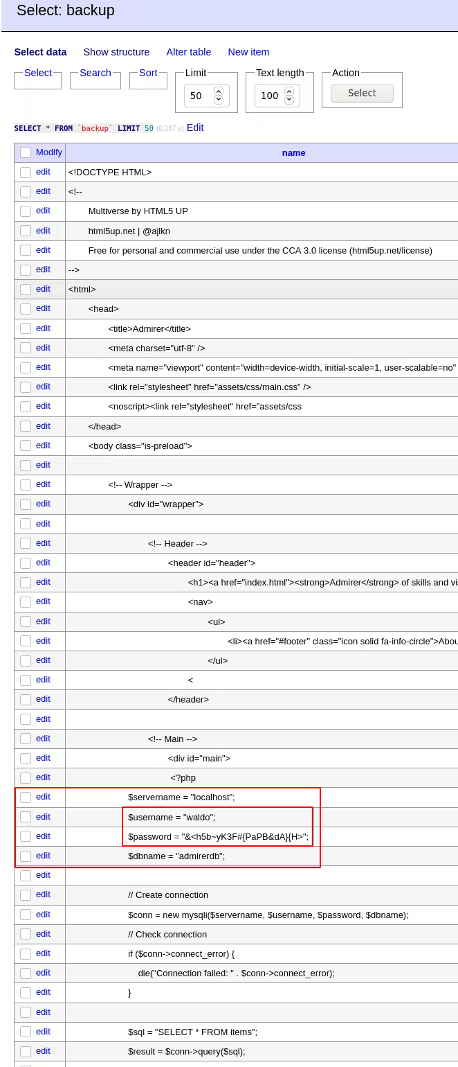 [ 10.10.14.13/23 ] [ /dev/pts/51 ] [~/HTB/Admirer]
