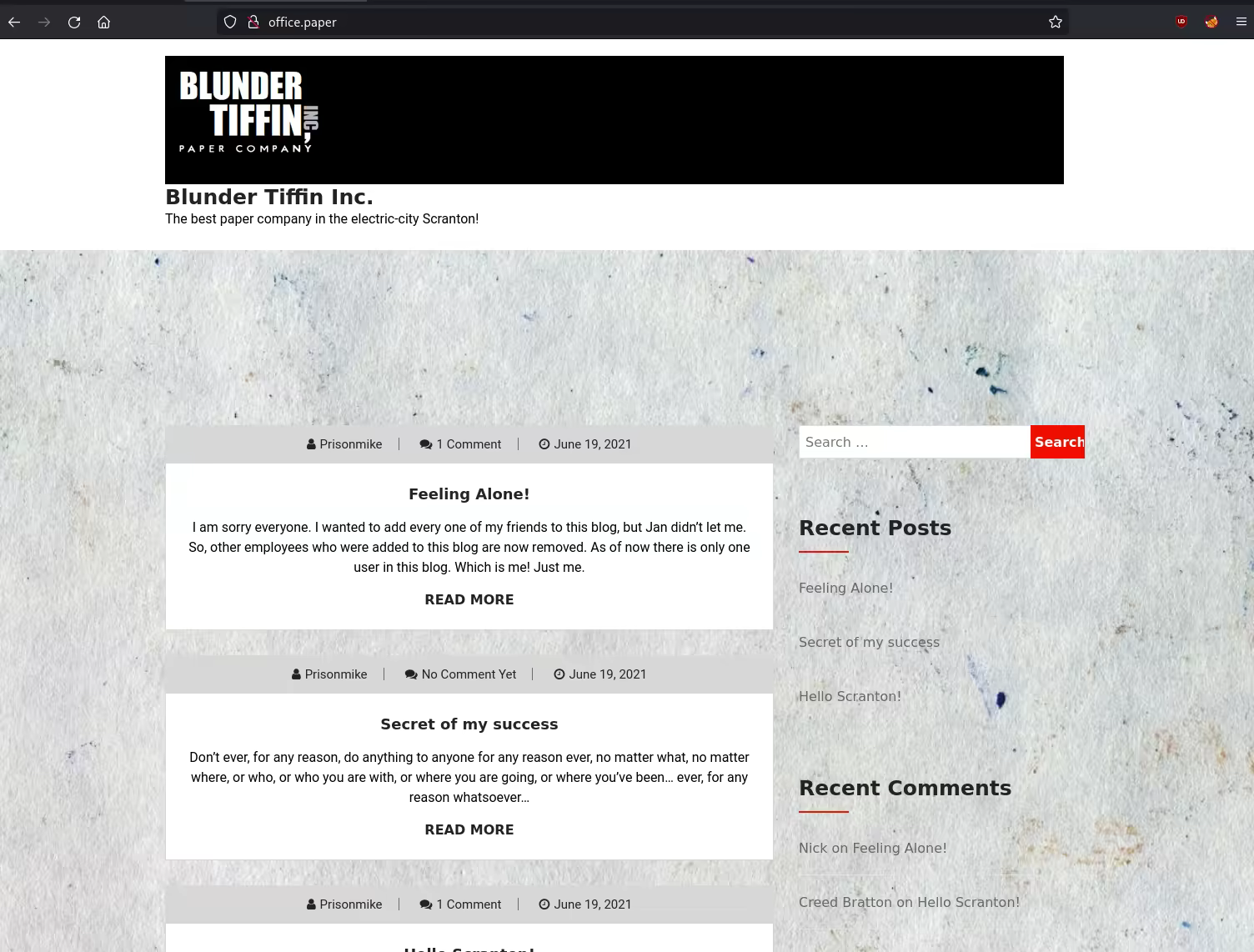 browsing to http://office.paper/wp-admin reveals that it is a wordpress site. So we run wpscan: