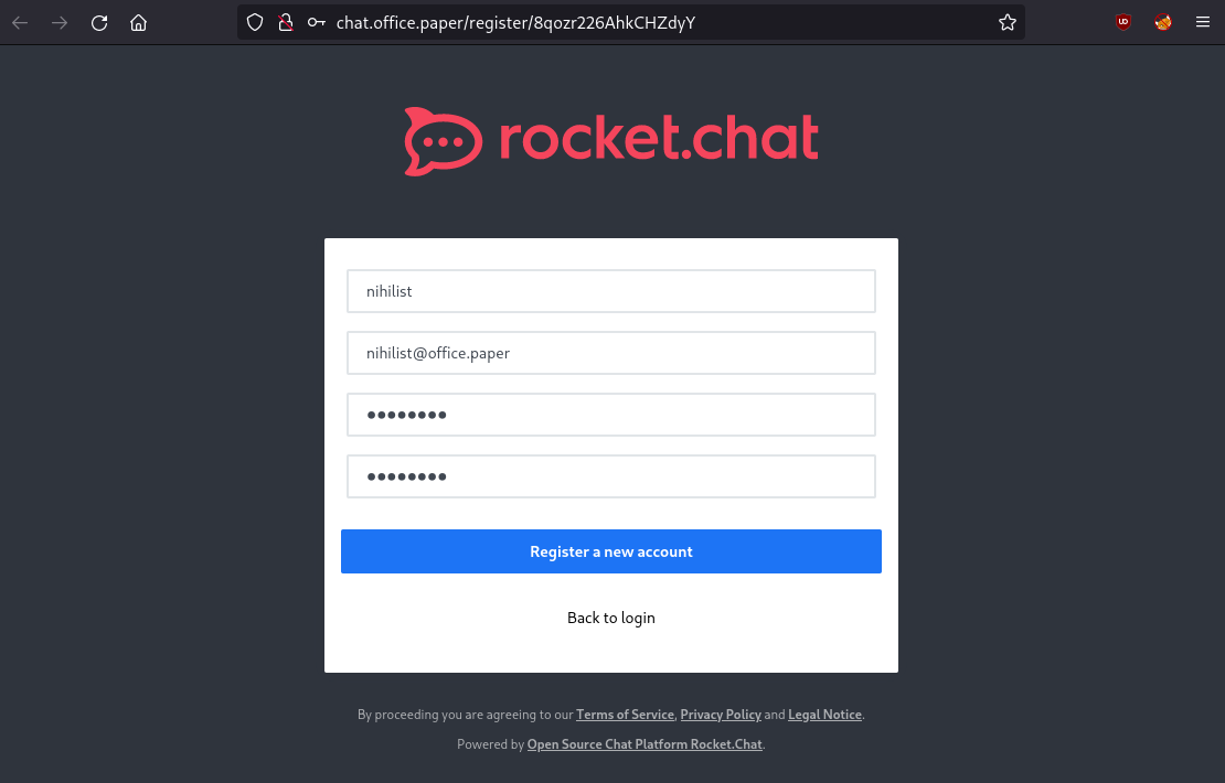 wfuzz found the chat.office.paper subdomain so let's also add it to our /etc/hosts file, then we browse it: