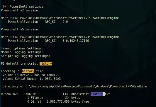 *Evil-WinRM* PS C:\Users\tony\Documents> cat C:\users\tony\appdata\roaming\microsoft\windows\PowerShell\PSReadline\ConsoleHost_history.txt