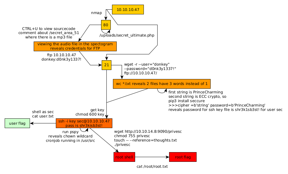 Here we are hinted towards /usr/src/thoughts.txt, and by running pspy earlier we know that there is a cronjob being run against the /usr/src directory, therefore we can exploit the wildcard in the cronjob running **chown nobody:nobody *** there.