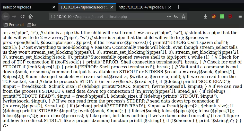However we don't get to see the php comments, so we hit CTRL+U to view the sourcecode: