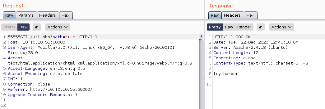 Target: http://10.10.10.55:60000/url.php?path=http://localhost:FUZZ