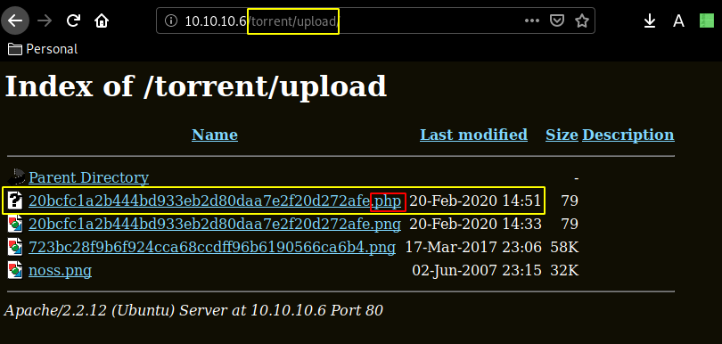 www-data@popcorn:/var/www/torrent/upload$ ls