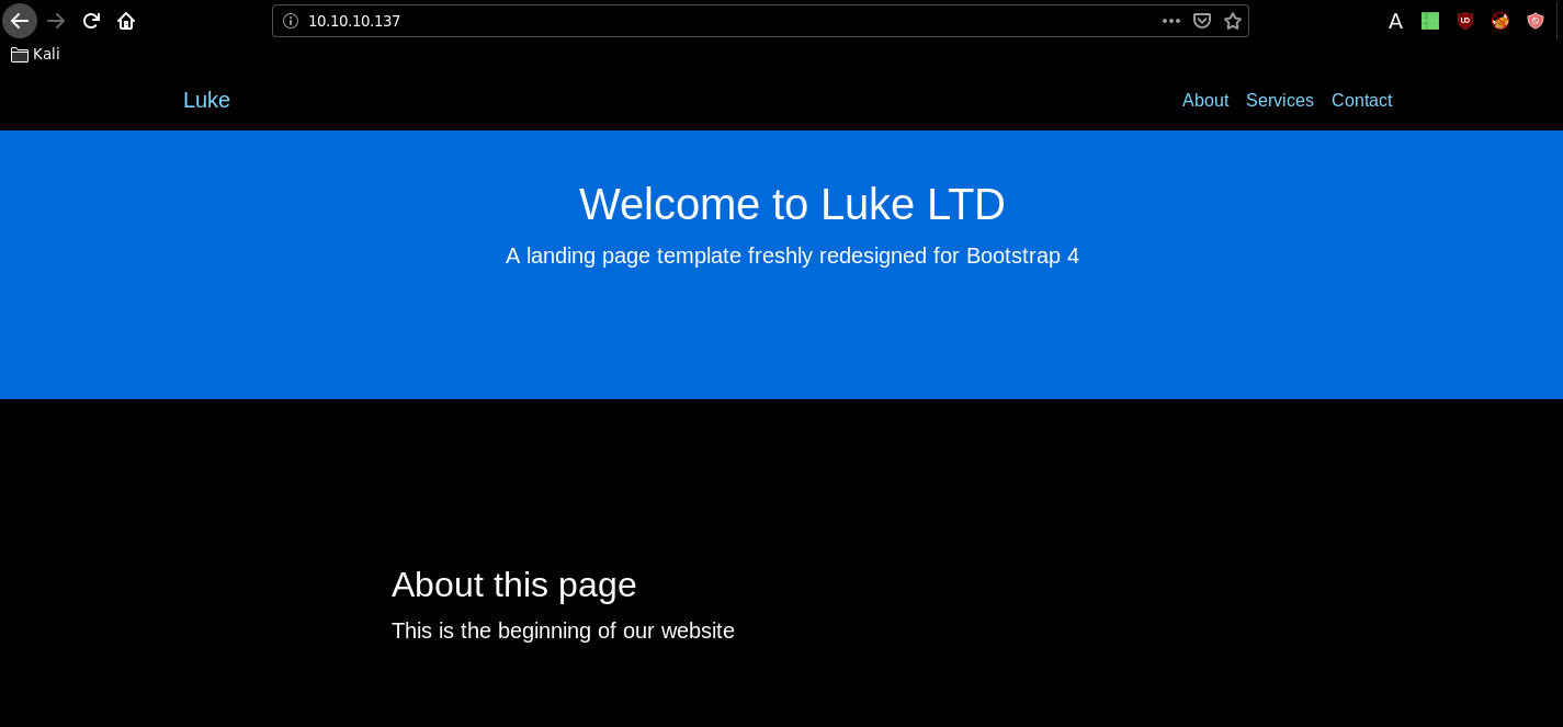 looks like they have a bunch of sourcecode but not available through anonymous login via ftp, so we'll investigate port 80 instead which is a bootstrap4 template page: