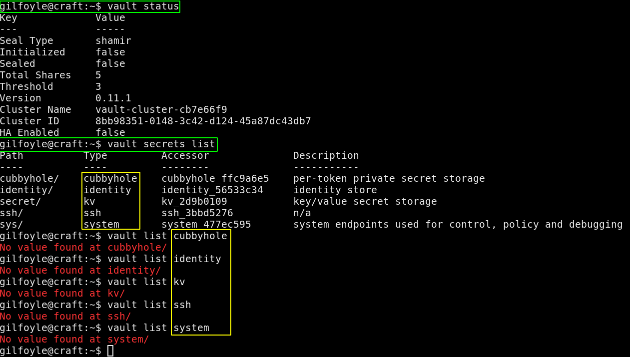 gilfoyle@craft:~$ vault ssh -mode=otp -role=root_otp root@127.0.0.1