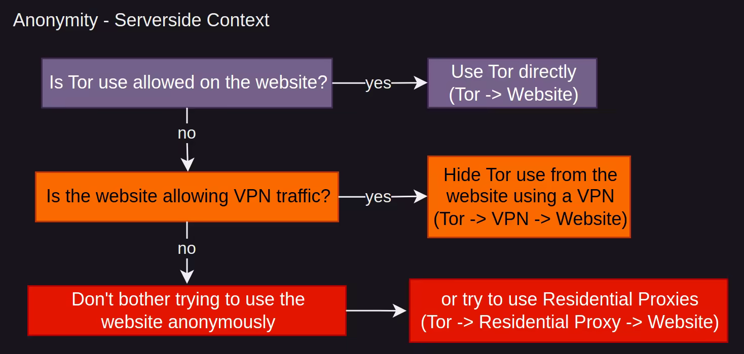 Serverside Context: This setup is to be considered only in the case where the destination website also blocks your attempts at connecting there via a (you -> Tor -> VPN -> destination) setup.