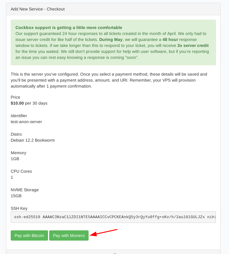 And that's it! We now have access to a remote server, we acquired it anonymously, and are now using it anonymously as well.