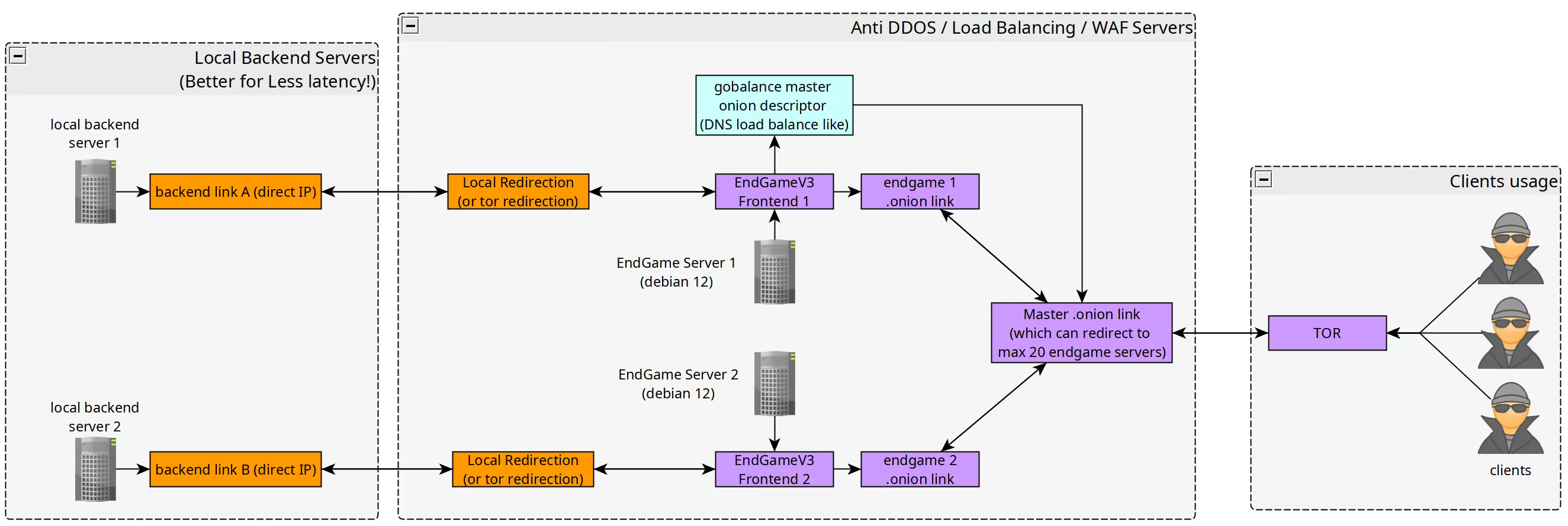 TLDR: to protect against DDoS attacks against onion websites, you can setup Endgame as a shield to your onion websites, while also enable load-balancing to scale out the effort it takes to take your services down.