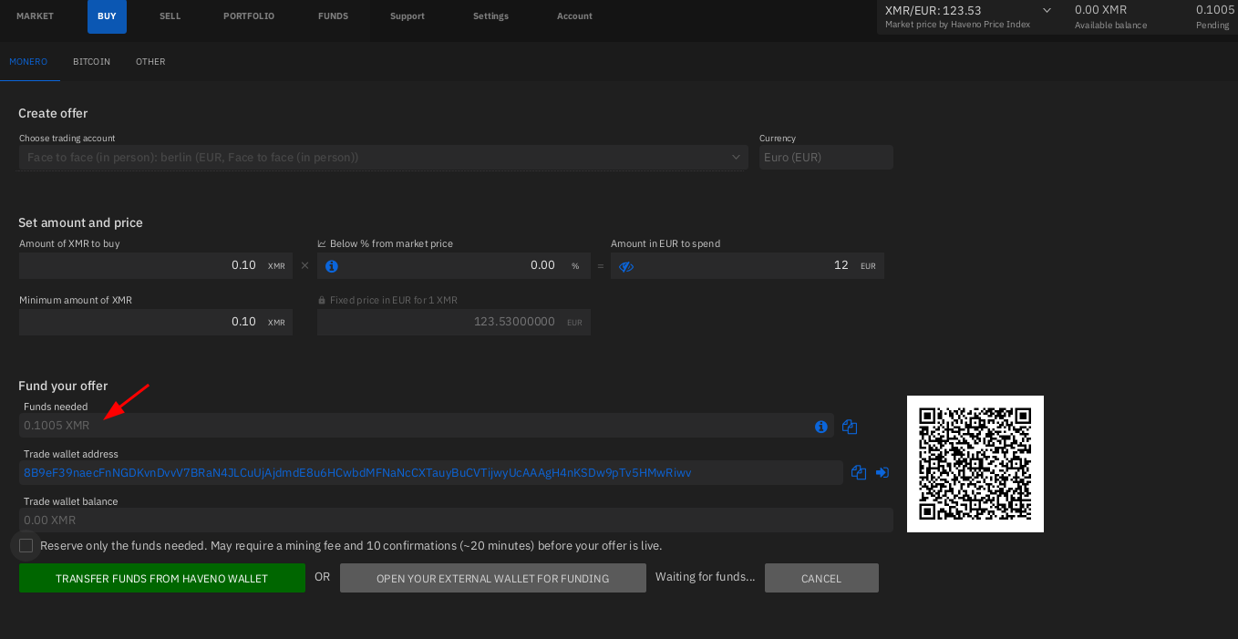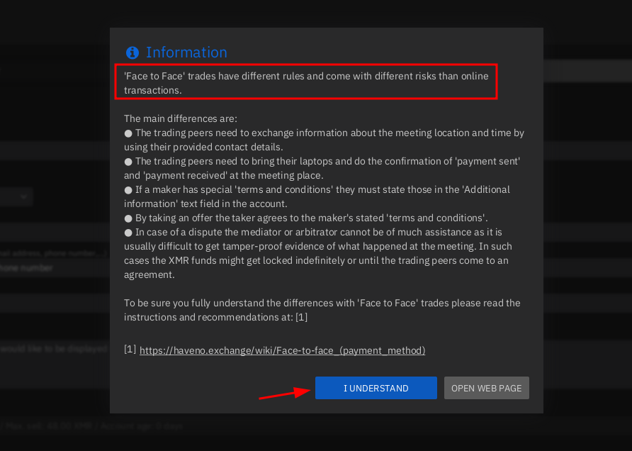 Sidenote : i don't recommend face-to-face as a payment option of choice, this is just to try out how a basic trade Haveno DEX works!
