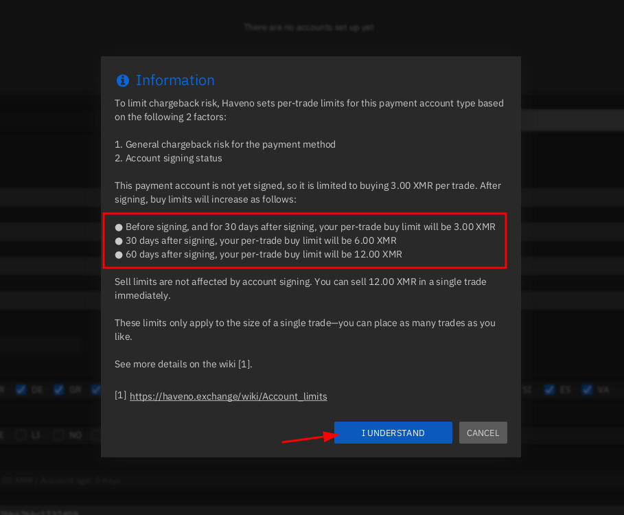 Currently we're limited to 3 XMR, but gradually over time we're going to be able to do up to 12 XMR trades at once after 60 days signing. This is to reduce chargebacks risks. One thing to note here is that we are able to create multiple sepa for xmr trades, unlike in our previous examples.