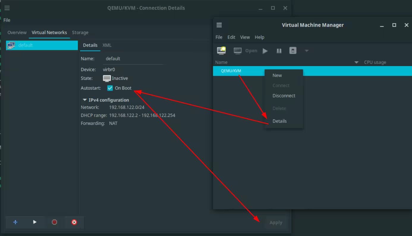 Next we do not virtualize anything using closed-source software like VMWare Workstation or else. We use QEMU/KVM with virt-manager, which is an open source hypervisor :