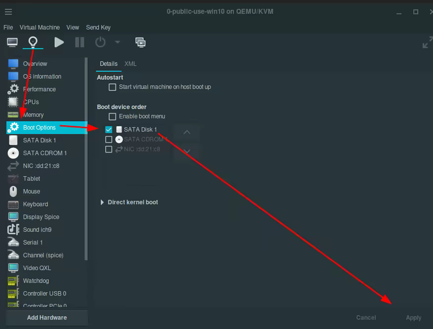 Then Bob can launch the windows VM (make sure that the VM boots onto the disk instead of the iso in the boot settings):