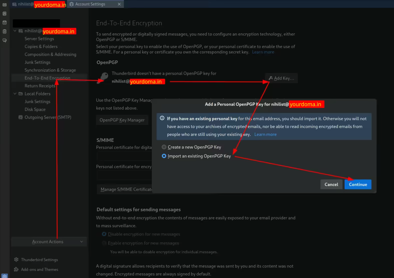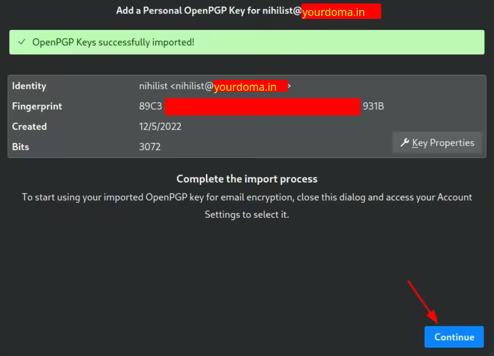Now the user nothing can use his PGP key and import it into thunderbird aswell: