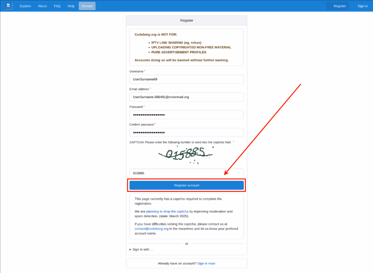 The SafeTwitch repository is hosted on Codeberg. The SafeTwitch instance list is managed on the same repository, in the readme file. We will create a Codeberg account and create an issue to add our instance to the list.
