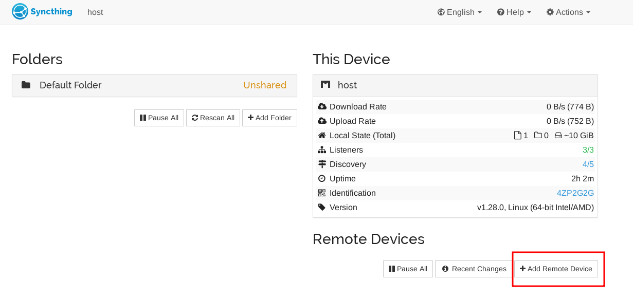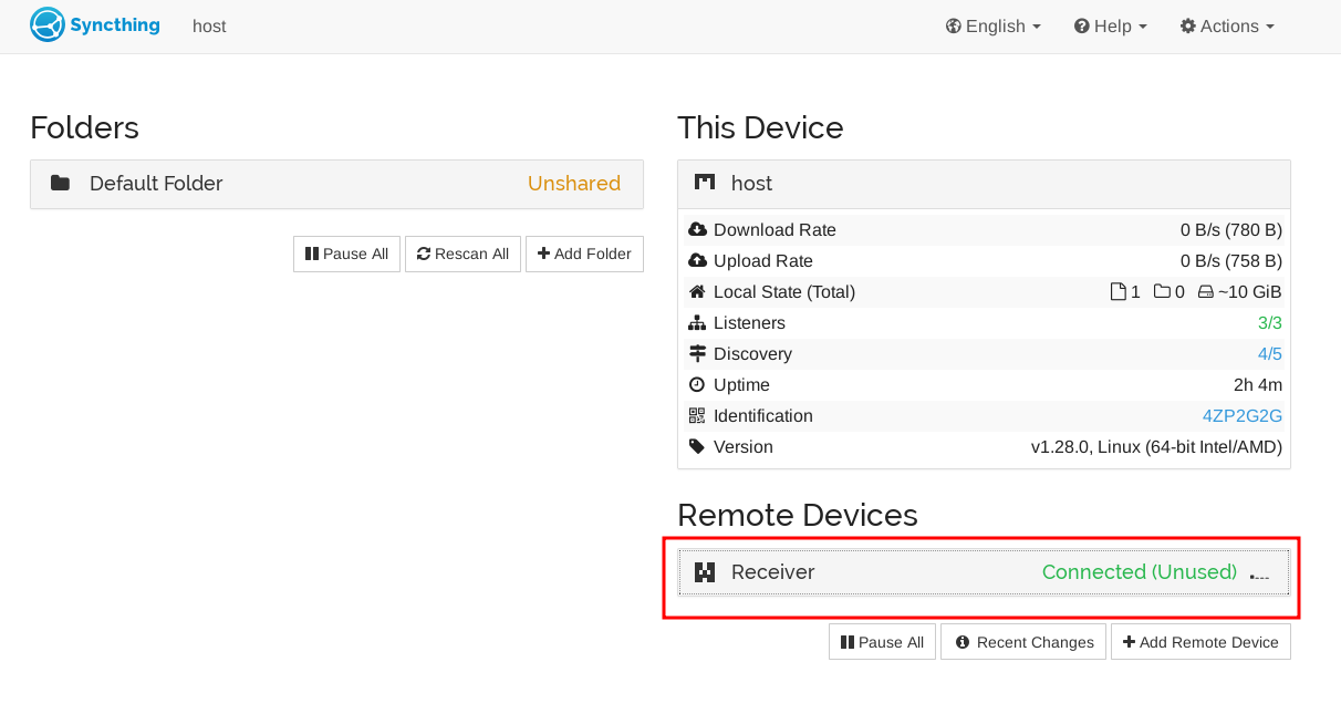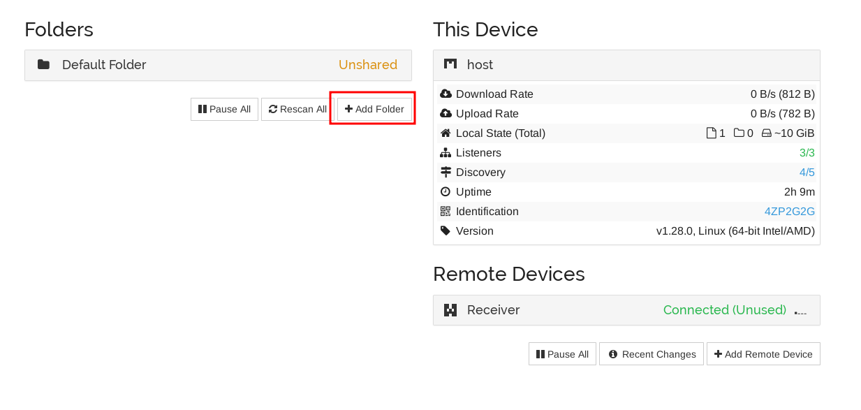Agree and add the folder, after that syncthing will automatically transmit the files