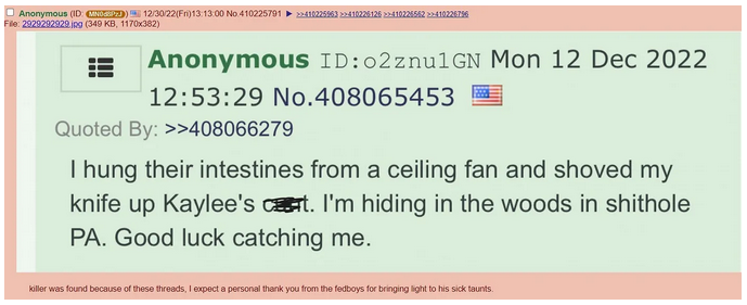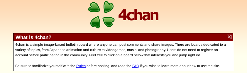 First of all, let us examine what 4chan is and why it matters in this context. Essentially, 4chan is a simple image-based bulletin board where users can share images and post comments. It is meant to be anonymous, but administrators have access to users' IP addresses, which means it is not truly anonymous. Moreover, several data leaks from 4chan have led to some users being identified and imprisoned because of what they posted on the platform. Nevertheless, from the very beginning, 4chan has been perceived by its users as a space of freedom because of this illusion of anonymity, leading many to post and comment without restraint. As a result, the platform quickly developed a controversial reputation, as users often behave in ways they would not elsewhere.