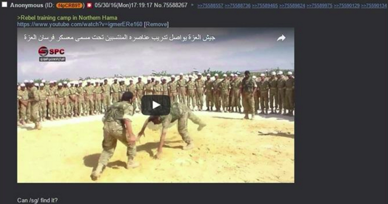 Now that we have seen what 4chan is and what OSINT involves, let us examine how the combination of the two led to the location of a Syrian rebel base. In 2016, a 4chan user shared a YouTube video showing a training exercise conducted at a rebel base in Syria and asked the community to locate it. Many users took up the challenge, and the investigation began.