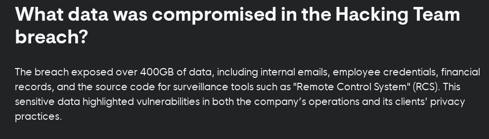 Phineas Fisher later explained how he hacked Hacking Team on Reddit. The motivation behind the attack was ideological, as he stated that Hacking Team was doing the dirty work for governments by helping them spy on their populations. Here is a quick summary of it.