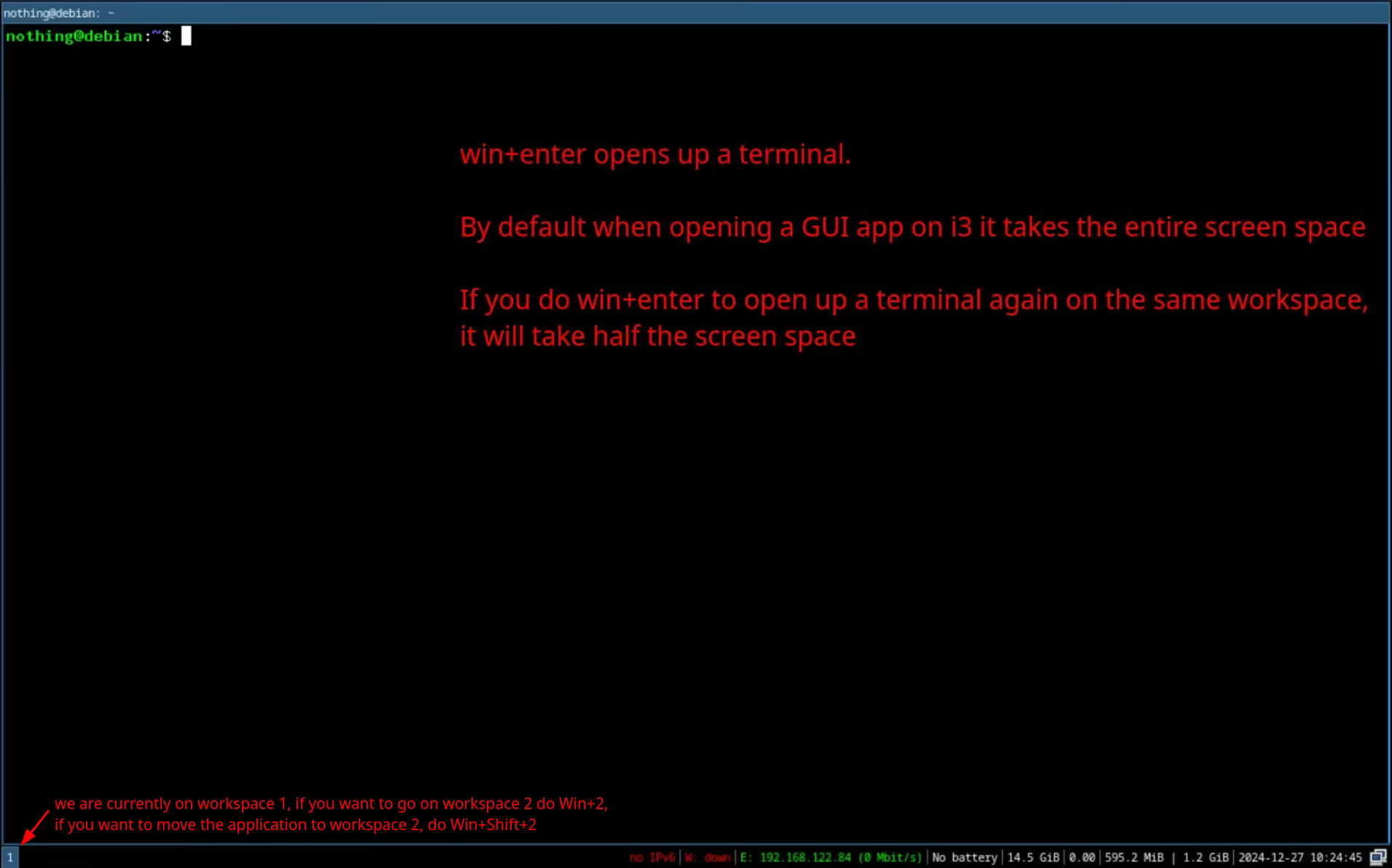 From there you can start to edit the i3 config from a terminal (that you open with the shortcut Win+ENTER):