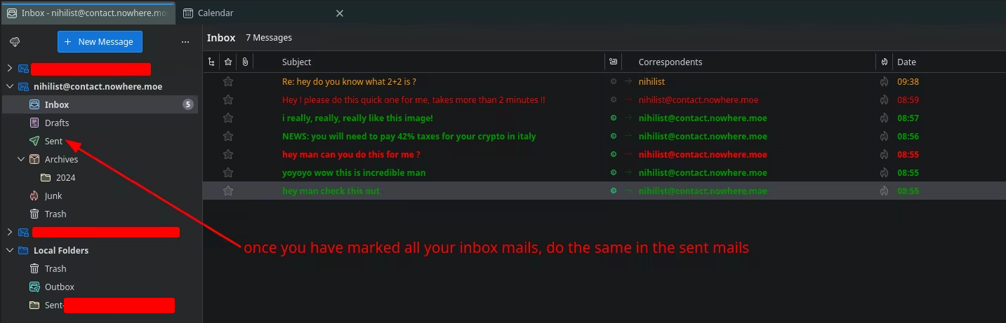 Once all emails are marked properly, you have this result, with visual cues as to what you are waiting for, what you need to do, and what you need to review later: